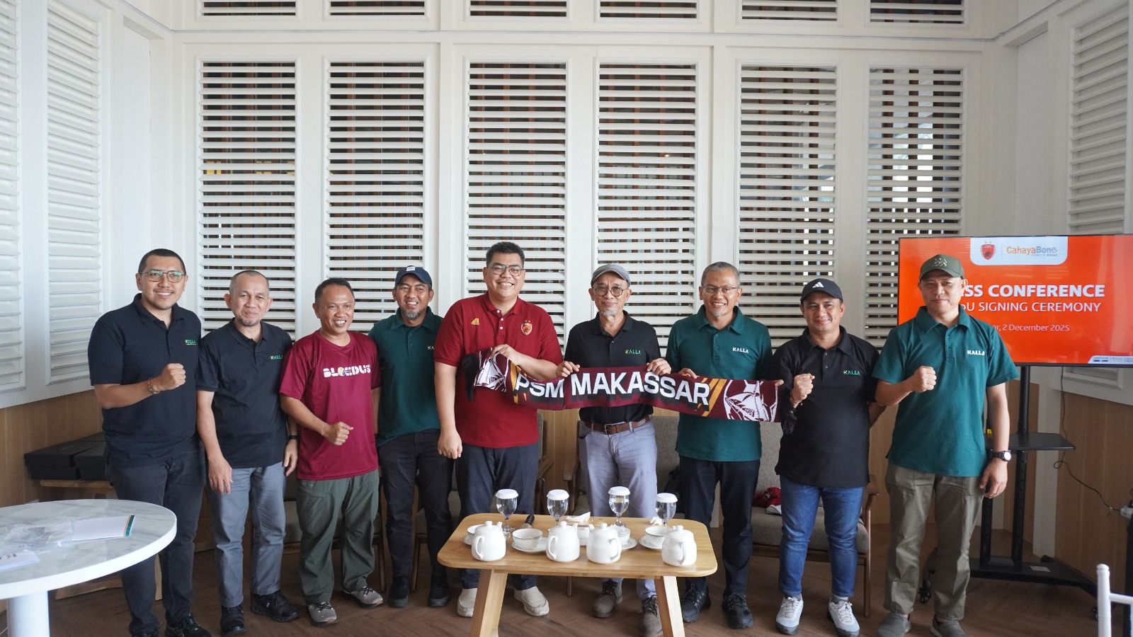 MAKASSAR.DAULATRAKYAT.ID.Cahaya Bone yang merupakan bagian dari Kalla Transport & Logistics (Translog) hari ini memperkuat komitmennya terhadap dunia sepak bola Sulawesi Selatan. Kalla Translog dan PSM Makassar resmi menandatangani Memorandum of Understanding (MoU) untuk memperluas kerja sama dari dukungan transportasi operasional menjadi kolaborasi strategis di bidang pemasaran dan experience suporter.